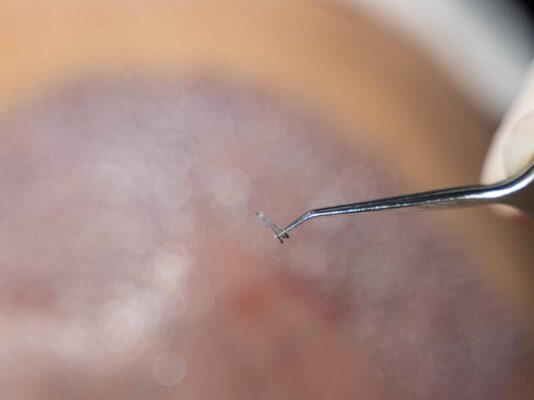 Графты, взятые из донорской области с помощью техники micro FUE, могут быть пересажены непосредственно в область трансплантации без разрезов.